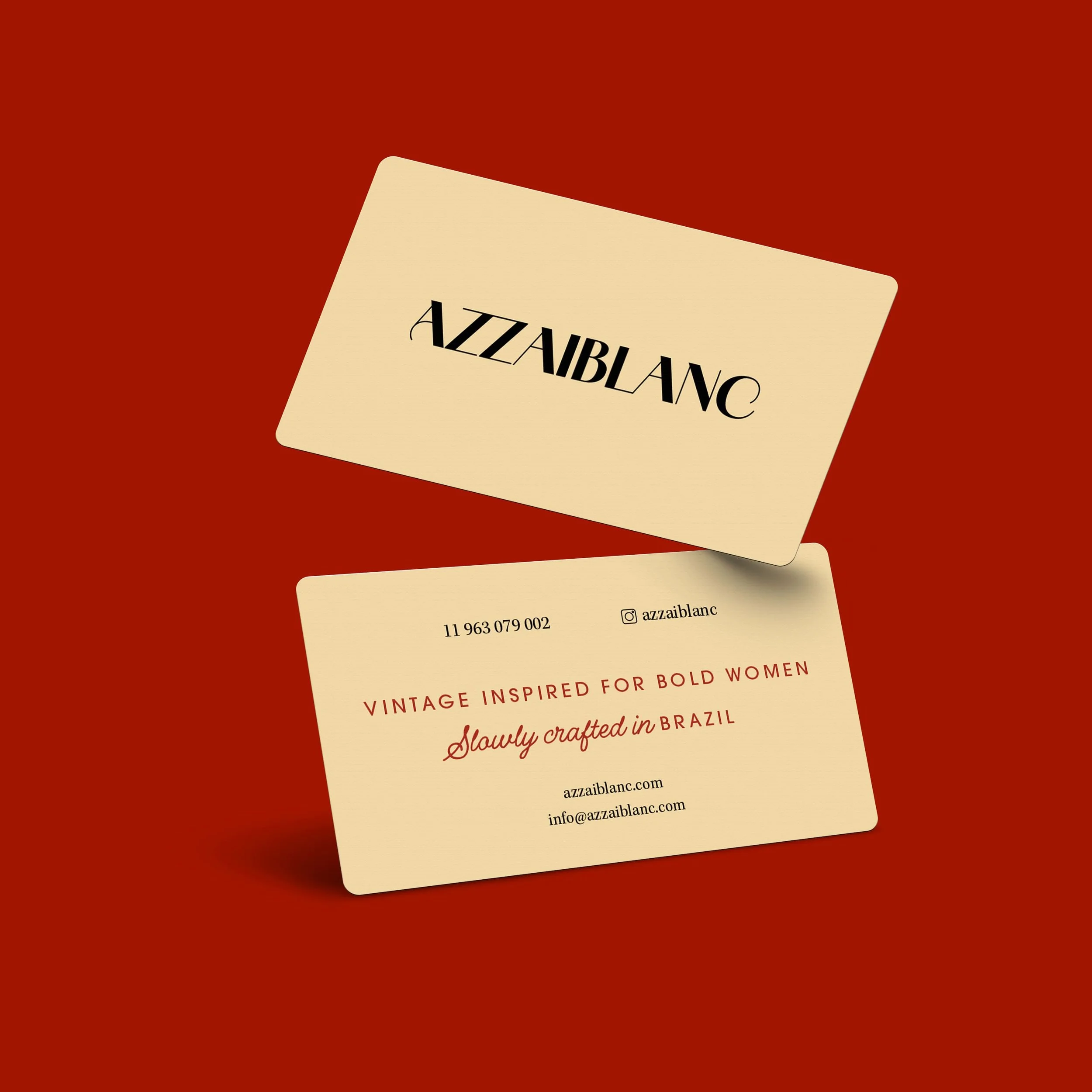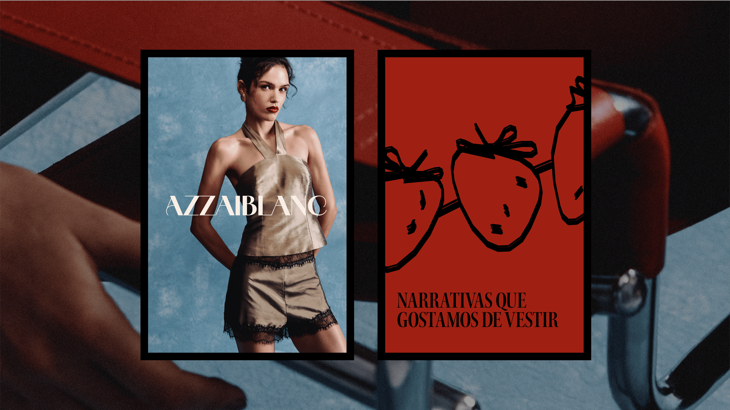 Os desdobramentos gráficos expandem essa lógica, mantendo consistência e presença em diferentes pontos de contato. A direção criativa do primeiro shooting também é extensão direta da estratégia e do sistema visual construído para a marca. Atuamos da produção à direção para construir imagens que expandem a narrativa. Tensionando luz e sombra, naturalidade e extravagância, criamos composições que aproximam moda e arte e reforçam a construção de autoridade para AZZAIBLANC.