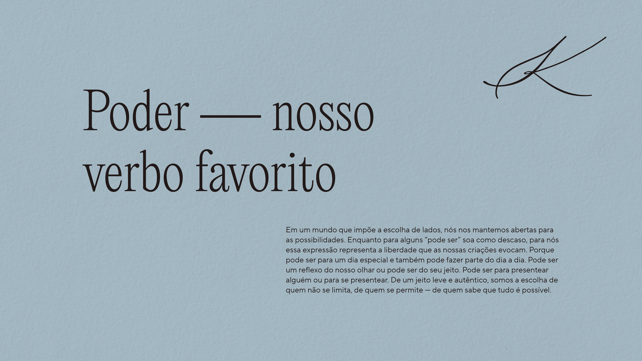 Nosso trabalho começou pela construção de uma narrativa estratégica capaz de ressignificar o poder, brincando entre o verbo e o substantivo com sutileza e presença. O discurso da marca seguiu ganhando forma em um posicionamento elegante e livre, que traduz a força feminina sem endurecê-la, com consciência e aproximação. A partir desse universo verbal e simbólico, desenhamos uma identidade visual que traduz o brilho da marca na verdadeira sofisticação discreta e na versatilidade— contemporânea, sedutora e cheia de bossa